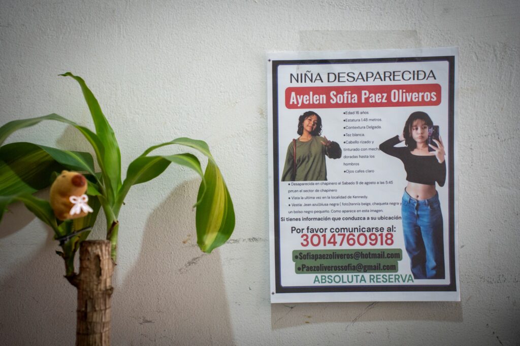 La menor de 16 años desapareció el 9 de agosto de 2025 en la localidad de Chapinero, en Bogotá. Fue vista por última vez al día siguiente, en horas de la madrugada, en la localidad de Kennedy. Desde entonces no hay rastro de su paradero. Claudia Oliveros, su madre, pide que las autoridades no desistan en la búsqueda de su hija y hace un llamado a la comunidad para aportar cualquier información que permita encontrarla.