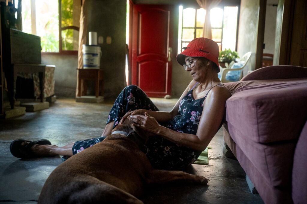 Sigrit Orozco junto a su perro Lucky en su vivienda ubicada en el corregimiento de Palo de Agua (Lorica, Córdoba). Foto: Jeimi Villamizar