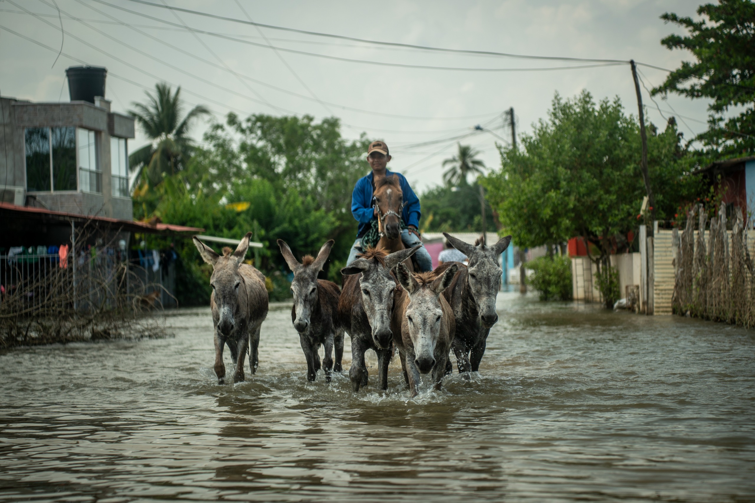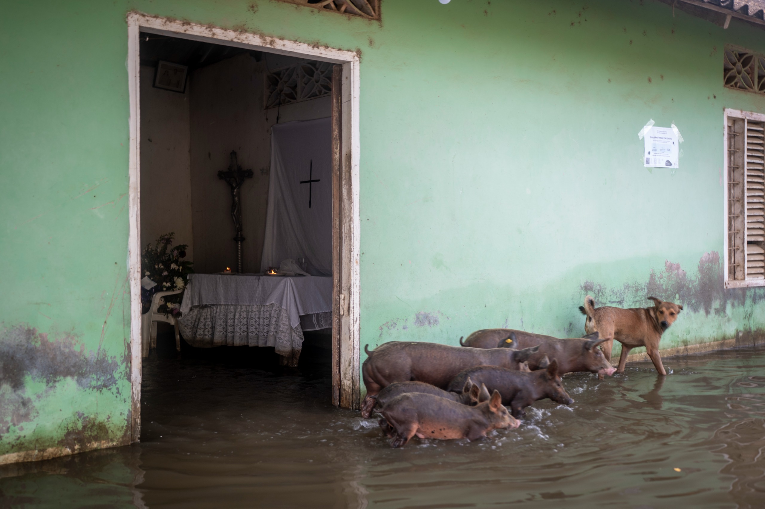 Mientras Sigritt se resguarda del agua, Erika, su hermana de 50 años, cuida de ella, de su madre y de su nieto de 5 años. De madrugada se levanta para atravesar el patio inundado y mover una a una las gallinas hasta el frente de su casa, para evitar que se ahoguen. Al terminar, camina por las calles con el agua por encima de las rodillas en busca de comida, agua potable y las donaciones que han llegado a su pueblo.